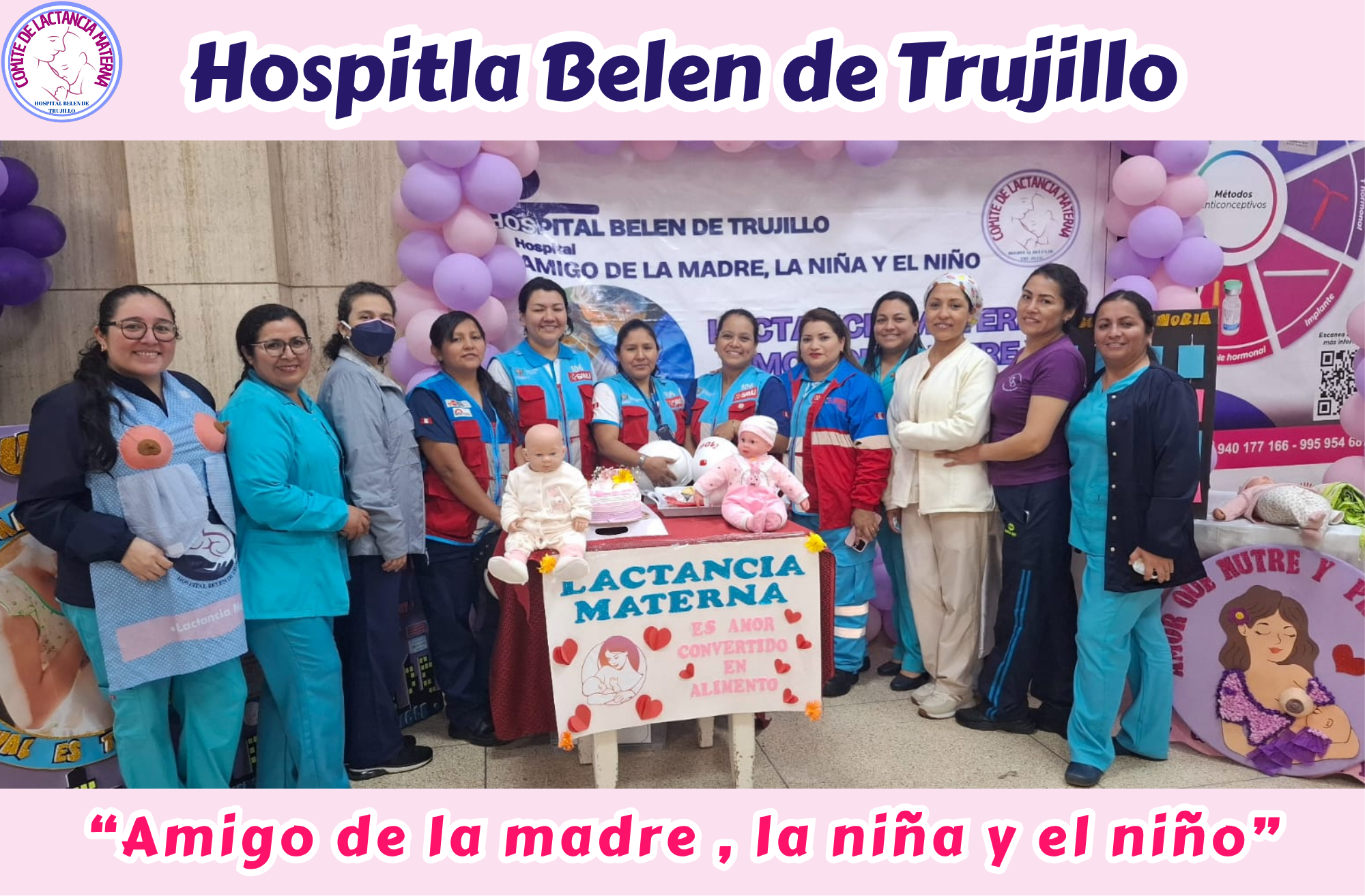 En el Hospital Belén de Trujillo contamos con una política de lactancia materna que promueve que la alimentación al pecho es un derecho fundamental del ser humano, ya que contribuye al desarrollo integral de las niñas y niños, mejora la salud de la madre y fortalece los vínculos familiares. Por ello en los servicios donde se atienden a las gestantes, madres y niños hasta los 2 años de edad favorecemos los DIEZ PASOS PARA UNA LACTANCIA MATERNA EXITOSA