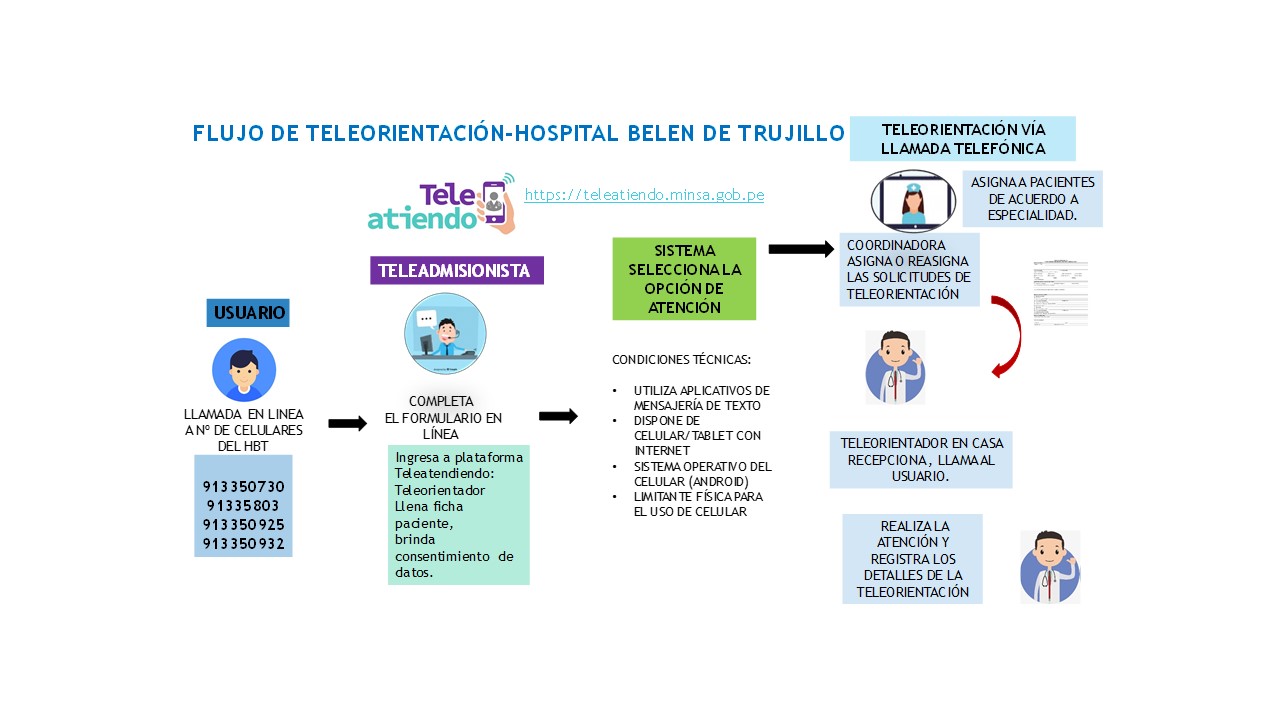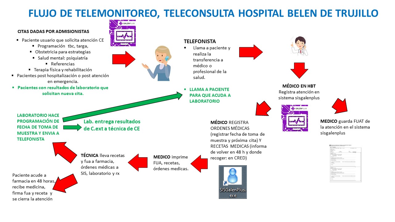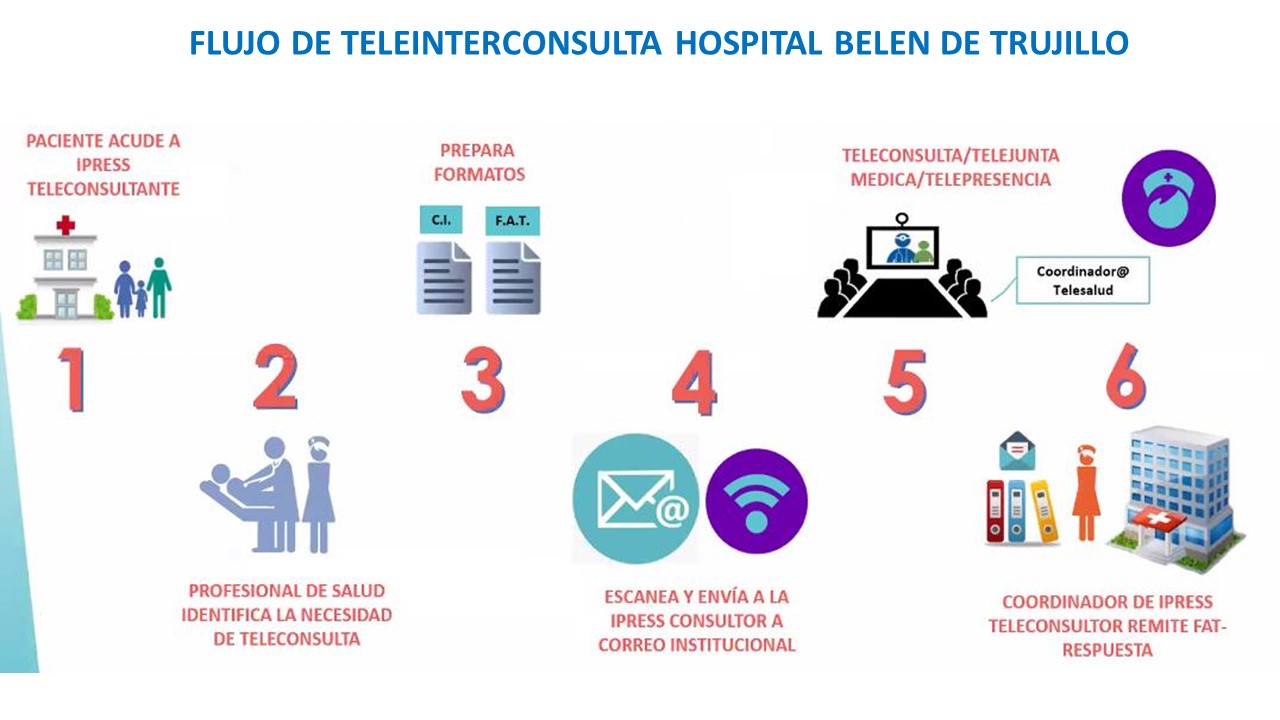 El Hospital Belen de Trujillo, brinda servicios de telesalud a distancia prestados por el persona de salud competente, utilizando las tecnologías de la información y la comunicación (TIC); mediante la telemedicina, la gestión de los servicios de salud; el fortalecimiento de capacidades al personal y la información, educación y comunicación con pertinencia cultural y lingüistica, con eficiencia y calidad para lograr servicios accesibles y oportunos a la población Liberteña y de la MacroNorte.